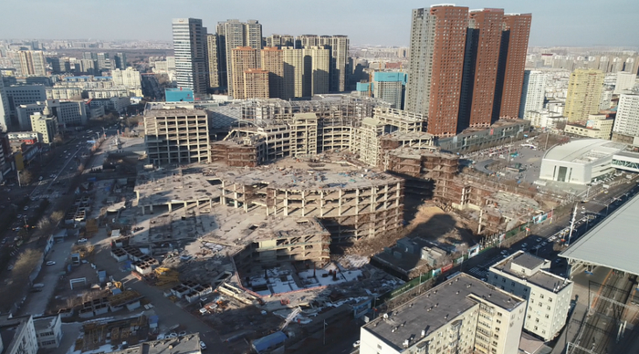 项目所在地块于2008年由韩国乐天集团获取并100%控股,原规划为一个集百货、影院、购物中心、室内主题乐园、酒店、写字楼及高端住宅于一体的大型城市综合体,总计容面积达107万平方米。项目共分为三期开发,其中一期已建成并投入使用,包括乐天百货、影院及部分住宅,二期、三期包含主题乐园、酒店、购物中心、写字楼及超高层地标等,已完成约三分之一开发强度。2016年百货停业,在建购物中心、主题乐园停工,项目就此停滞,成为城市核心区的一道刺目的灰瑕。
