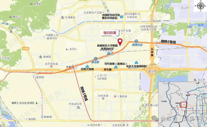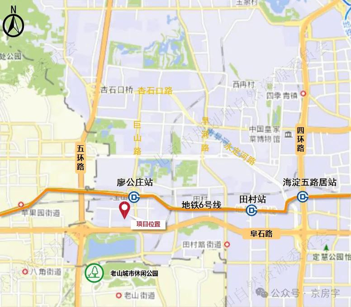 这个地块位于苹果园街道,五环至六环之间,临近地铁6号线杨庄站、西黄村站,距城市干道西五环、阜石路约1公里。紧邻苹果园商圈,周边教育、医疗及商业配套资源较为丰富。