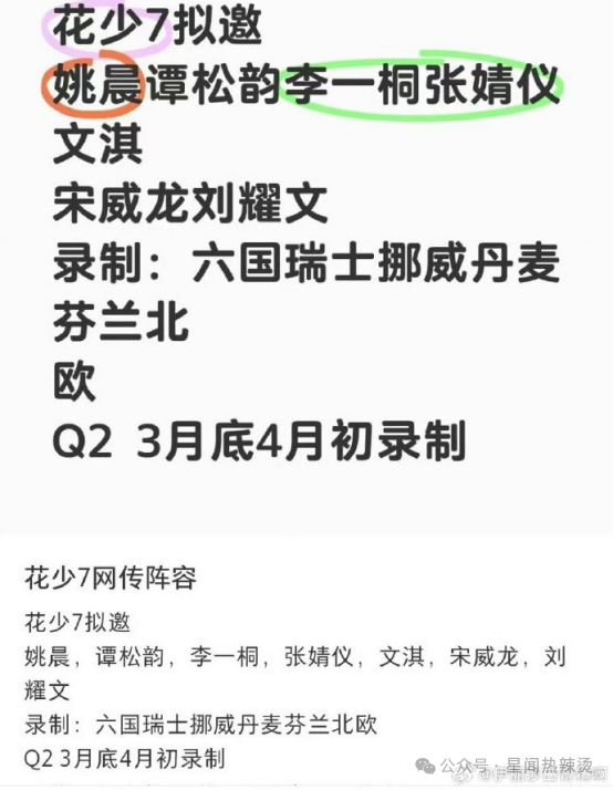最近,《花儿与少年》第七季的网传阵容成了热搜焦点,引发了全网热议,阅读量高达2781.2万、讨论量2.5万、互动量27.1万。有关《花儿与少年 7》的阵容讨论也是变了又变。
