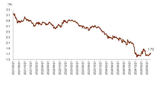 注:1)数据截至2025年5月30日,数据频率为月度;2)股息率根据过去12个月股息及总市值计算