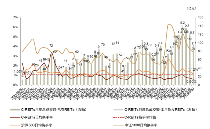 图表7:C-REITs市场成交额及换手率