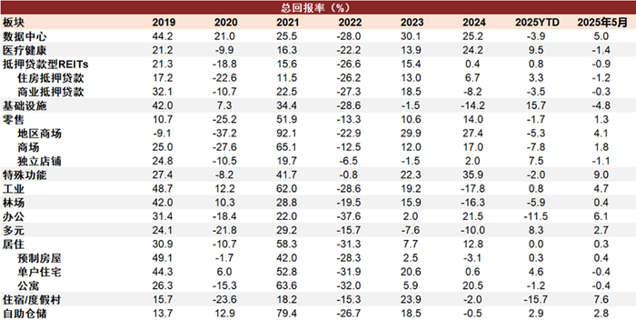 注:1)2019-2025年数据为年度总回报率,2025年5月数据为月度总回报率;2)数据截至2025年5月30日