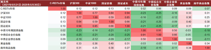 注:1)REITs与债券及权益的关系分别采用中债综合全价指数、沪深300指数计算;2)数据截至2025年5月30日