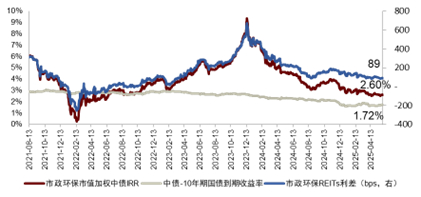 图表15:市政环保REITs利差情况