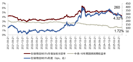 图表19:仓储物流REITs利差情况