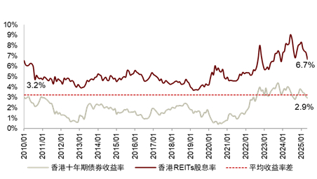 图表35:中国香港REITs股息率与香港政府十年期债券收益率对比