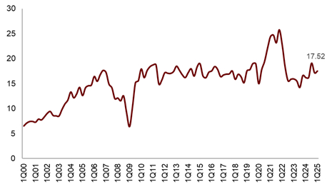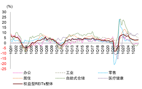 注:NAREIT最新数据截至2025年一季度, 数据频率为季度