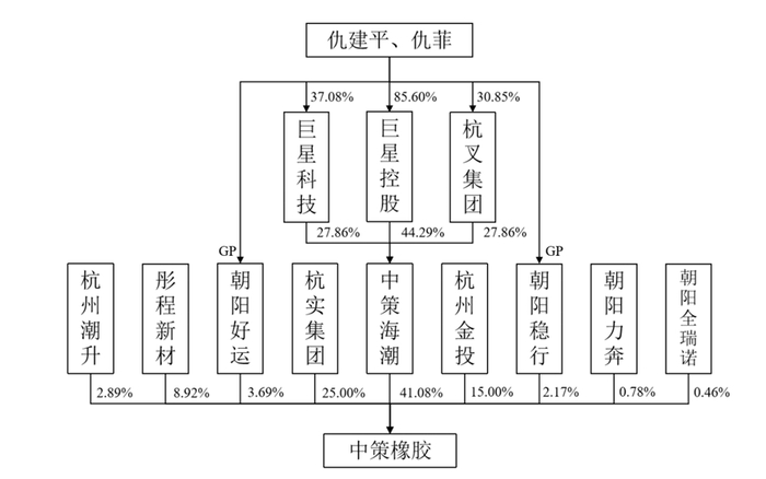 五年后,CPE源峰等股东方寻求退出。恰好中策橡胶和仇建平旗下公司杭叉集团合作良久,于是仇建平没有错过这个难得机会。2019年,他控股的“巨星系”——巨星集团、杭叉集团、巨星科技以57.98亿元拿下中策橡胶46.95%的股份,公司总体预估值为123.5亿元。