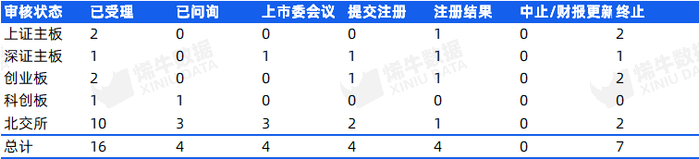 2025年5月已受理企业16家,已问询企业4家,上会企业4家,提交注册企业4家,注册结果4家,中止及财报更新0家,终止7家,整体IPO审核状态如下: