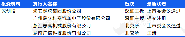 投资机构概览——深创投最为活跃,投资了上市审核流程4家企业