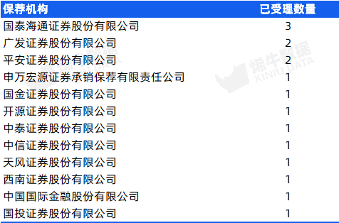 5月,共有16家企业已受理,涉及12家保荐机构,其中,国泰海通证券最为活跃,3家服务企业已受理,广发证券、平安证券各自有2家服务企业已受理。