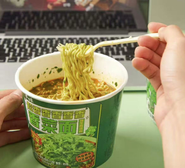 过去两年白象通过营销不断出圈,其中在产品创新上,推出的新品香菜面大受欢迎。收获大单品红利的白象在此后也延续这一爆品路线,又推出诸如辣条拌面、牛油麻辣火锅拌面等产品。