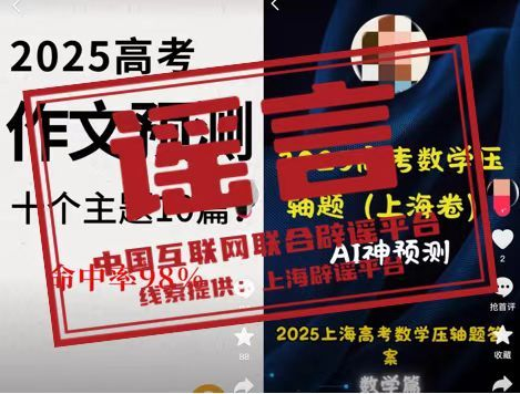 真相:高考进入冲刺阶段,不少自媒体在社交平台上称,可以利用AI预测考题,包括语文作文题、数学压轴题等;甚至有自媒体打出“命中率98%”的旗号。这是真的吗?