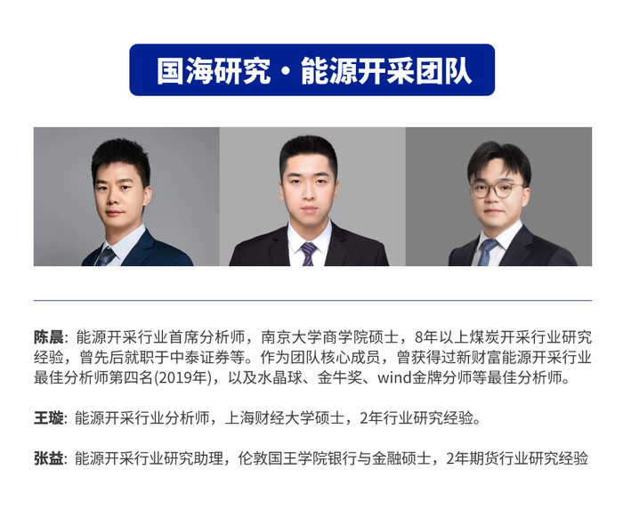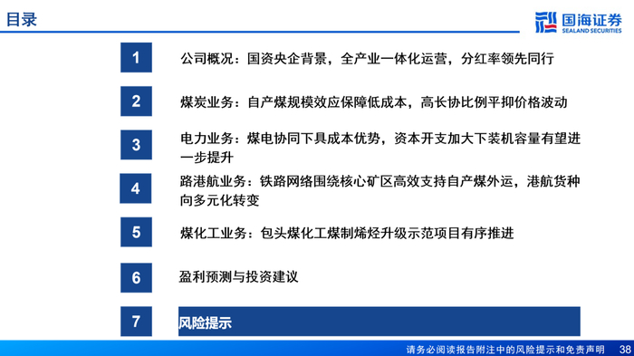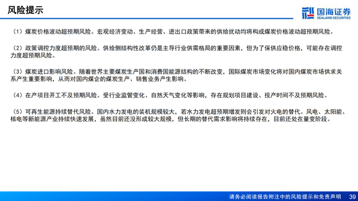风险提示:(1)煤炭价格波动超预期风险。(2)政策调控力度超预期的风险。(3)煤炭进口影响风险。(4)在产项目开工不及预期风险。(5)可再生能源持续替代风险。
