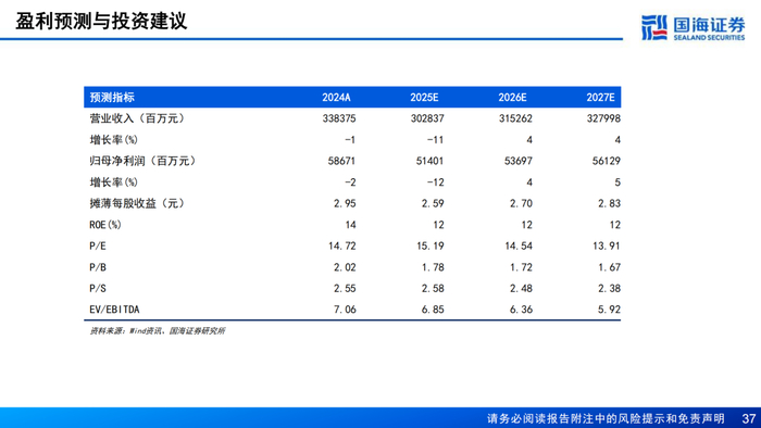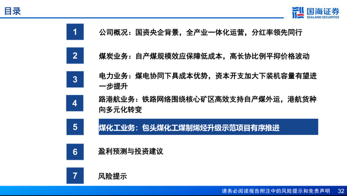 煤化工业务:包头煤化工煤制烯烃升级示范项目有序推进。公司拥有产能约60万吨/年的煤制烯烃项目,2024年包头煤化工煤制烯烃升级示范项目(产能75万吨/年)建设有序推进。2024年聚乙烯产销量分别为336.5/332.2千吨,聚丙烯产销量分别为313.7/313.6千吨,煤化工业务毛利为328百万元。我们预计2025年煤化工分部毛利为4亿元。