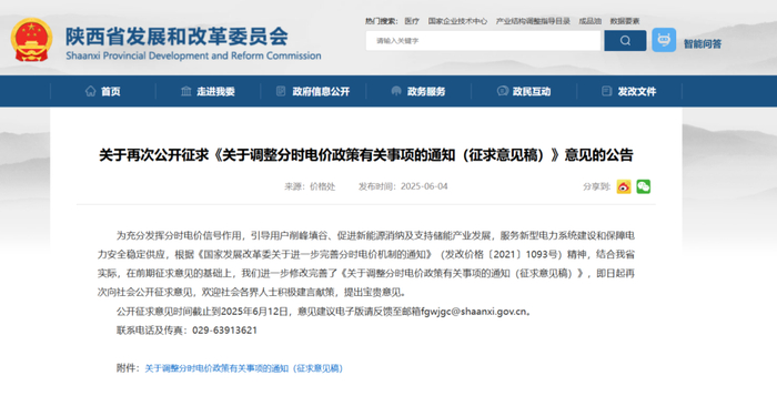 公开征求意见时间截止到2025年6月12日,意见建议电子版请反馈至邮箱fgwjgc@shaanxi.gov.cn。
