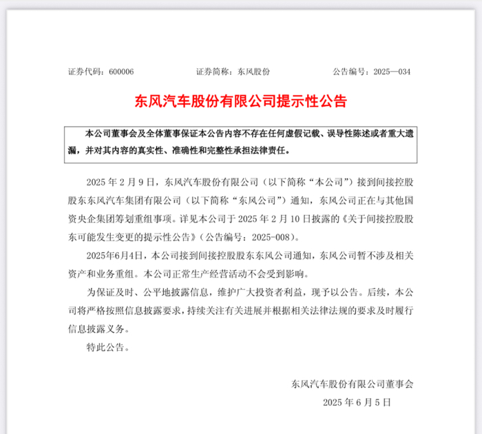 6月5日披露的这一系列公告,相当于颠覆了此前预期,同时也正式宣告东风-长安合并计划的阶段性终结。