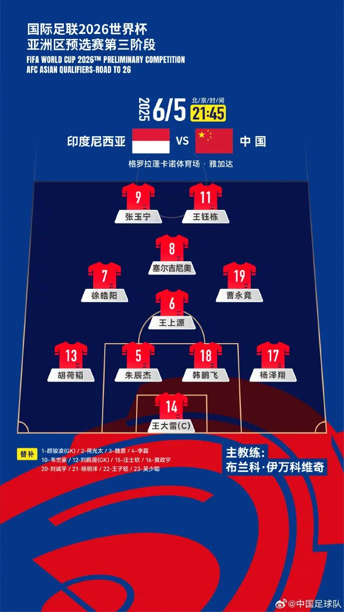 除了张玉宁和小将王钰栋在锋线搭档外,王上源、徐皓阳、塞尔吉尼奥和曹永竞构成的四中场也将肩负起为国足打通进攻路线的重任。