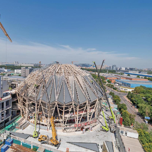宋朋介绍,中国杂技艺术中心建设项目是北京推进全国文化中心建设、优化公共文化设施布局的重点举措。项目建设用地呈L形,建筑总面积约6.2万平方米,包括1950座的大型剧场、800座的曲剧场、300座的多功能厅等功能区域,具备大型杂技演出、曲剧演出、发布会等功能。“此次完成钢结构施工的1950座大型剧场是中国杂技艺术中心项目中最具特色、施工难度最大的单体建筑。”宋朋说,工程造型独具特色,球状外观,双曲面UHPC波浪形造型板,呈现出作为北京首个专业杂技演出剧场的鲜明功能特点。