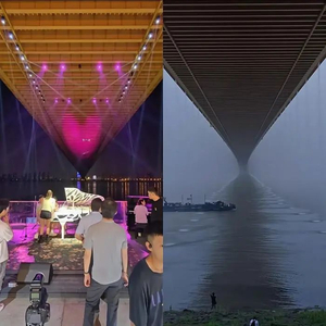 5月20日,由武汉城投城运集团公司打造的“江影·杨泗港城市灯光音乐社”投入试运营,强势入驻杨泗港大桥桥下空间,植入餐饮、表演、霓虹灯光秀及文创市集。