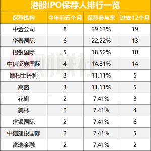 前5个月,共计23家投行参与了27只港股IPO的上市保荐工作,今年的保荐机构排名中,市场份额占比高、保荐数量靠前保荐机构均被中资券商占领。