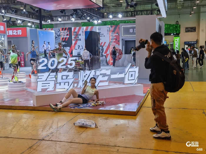 4月17日在青岛国际会展中心,参加2025青岛马拉松的选手可以凭号码布在“青马博览会”上购买折扣商品。