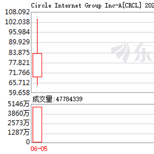 Circle盘中最高超过103美元,最大涨幅达到234.68%,当日收盘价为每股83.23美元,涨幅168.5%,公司总市值超180亿美元。Circle当日的成交量约为4600万股,远超市场上可自由交易的流通股数量。