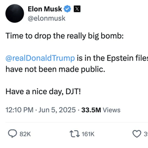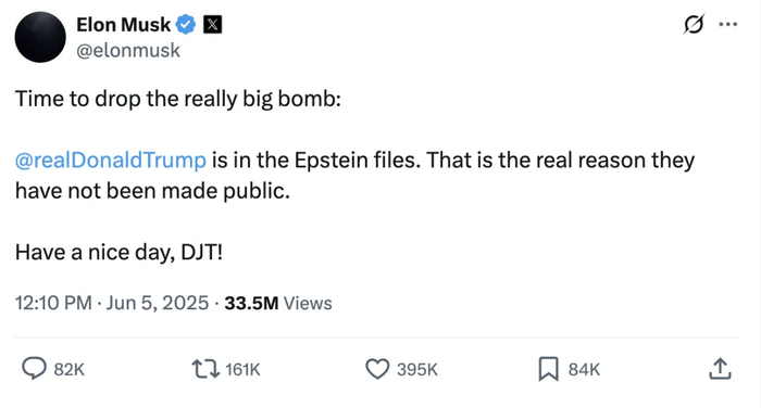 马斯克称特朗普在爱泼斯坦案名单里