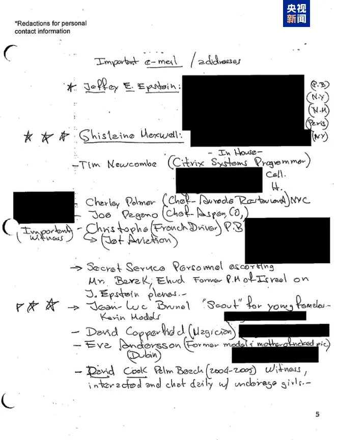 6月5日,马斯克在社交平台X上发文,称特朗普之所以未公开杰弗里·爱泼斯坦(Jeffrey Epstein)的相关文件,是因为其中包含了特朗普的名字。据美国福克斯新闻网6月5日报道,美国联邦调查局(FBI)副局长丹·邦吉诺在接受该媒体采访时,介绍了关于已故富商杰弗里·爱泼斯坦档案的最新调查情况。邦吉诺称,在爱泼斯坦的档案中,没有任何证据表明他死于自杀以外的其他方式。福克斯新闻网称,关于“爱泼斯坦在狱中被谋杀”的阴谋论仍在流传。2019年7月,爱泼斯坦因涉嫌合谋拐卖和性侵未成年女性被捕,同年8月10日在纽约一座监狱死亡,法医认定其死于自杀。 爱泼斯坦性侵丑闻一经披露,便引起轩然大波。爱泼斯坦与美国政商各界的权贵和名人交往甚广,曾购买美属维尔京群岛的一座私人岛屿,并在那里组织大规模未成年人性交易活动。该岛屿后来被称为“萝莉岛”,一些美国政客和名人被指曾到访过此地。美国总统特朗普去年参加竞选时曾表示要公布涉及“萝莉岛”的大人物名单,该名单被指包括一些知名民主党人士或支持者。据央视新闻此前报道,当地时间4月25日,弗吉尼亚·朱弗雷(Virginia Giuffre),爱泼斯坦性侵案中最早发声、最具代表性的受害者之一,于近日在澳大利亚自杀身亡,终年41岁。其家人于25日发表声明确认了这一消息。她曾是推动对爱泼斯坦及其共犯提起刑事指控的主要人物,其勇敢发声也鼓舞了众多受害者公开讲述自己的经历。当地时间2月27日,美国司法部在其网站上公布了与爱泼斯坦案有关的首批文件档案。据发布在美国司法部网站上的声明称,美国司法部长邦迪与美国联邦调查局一起解密并公布了与“被定罪的性犯罪者杰弗里·爱泼斯坦及其在纽约州和佛罗里达州等地家中对250多名未成年女孩进行性剥削”有关的档案。解密文件的第一阶段主要包含“之前已经泄露但从未由美国政府正式发布的文件”。声明称,美国司法部长邦迪要求获取与爱泼斯坦案有关的全部档案。作为回应,司法部收到了大约200页文件,但还有数千页文件未披露,这些文件涉及对爱泼斯坦案的调查和起诉。邦迪已经要求联邦调查局在美国东部时间2月28日上午8时之前将剩余文件交给司法部,并责成联邦调查局局长帕特尔调查为何未按照要求提供所有文件。已被公布的这两百多页文件中,有大约100页被大段涂黑,甚至有多页被整体涂黑。从文件页面左上角的标注来看,涂黑是“为保护潜在受害者信息而进行的编辑”。