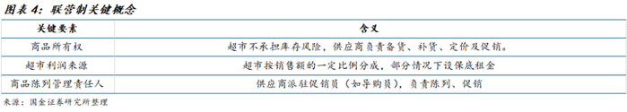 联营制的核心是商超不需要买断商品所有权,库存风险转移给供应商,但同时也让渡了部分商品经营权。供应商免费提供人员上门帮助整理货架,并且库存风险不需要商超承担,商超只需要提供货架位置,根据供应商的销售收入按比例收取扣点即可获得利润,因此成为多数商超选择的经营方式之一。
