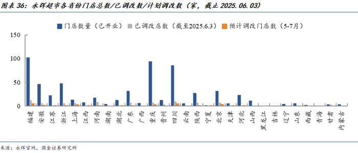 截止2025年6月3日,永辉超市总门店数为618家,调改开业门店94家,占目前现有门店比重为15.2%,2025全年预计关闭250-350家门店,6月底前预计调改门店突破124家,7月底前预计调改门店突破150家,覆盖城市60座。