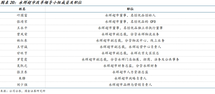 在第六届董事会第一次会议上,张轩松继续担任永辉超市董事长。王守诚、罗雯霞等6人获聘为公司副总裁,吴凯之出任财务总监,黄晓枫出任董秘。公司成立改革领导小组,名创优品创始人叶国富出任组长,负责统领公司改革转型工作,所有副总裁及多名核心管理人员为组员。
