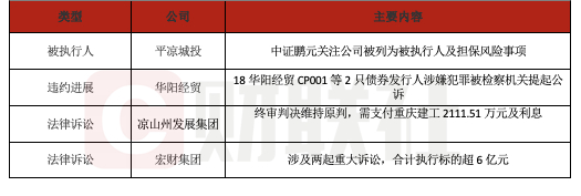 【中证鹏元:关注平凉城投被列为被执行人及担保风险事项】