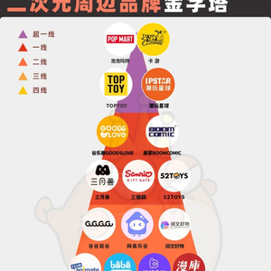 1.泡泡玛特、卡游、TOPTOY和潮玩星球等品牌凭借着齐全的周边品类和超过百家的线下店数量,在二次元周边领域有着不可撼动的市场地位;