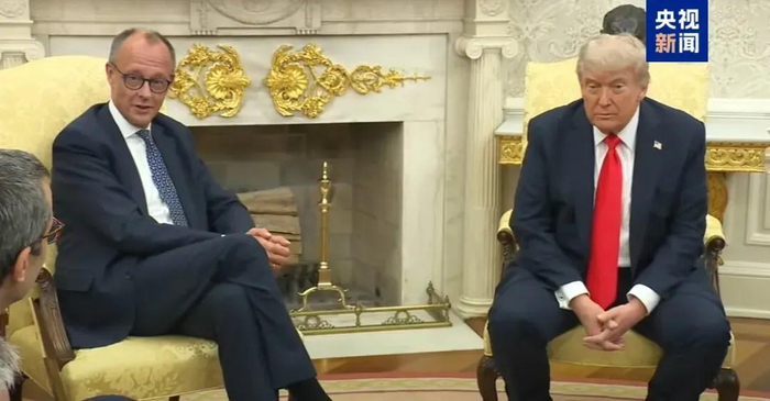 默茨(左)特朗普(右)。图片来源:央视新闻客户端