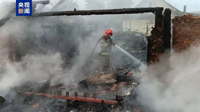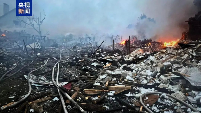 资料图乌克兰国家紧急情况服务中心5月25日通报称,基辅州遭俄军大规模袭击。图片来源:央视新闻客户端