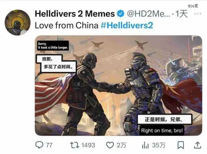 一位玩家在《绝地潜兵2》的Steam评论区激情留言。
