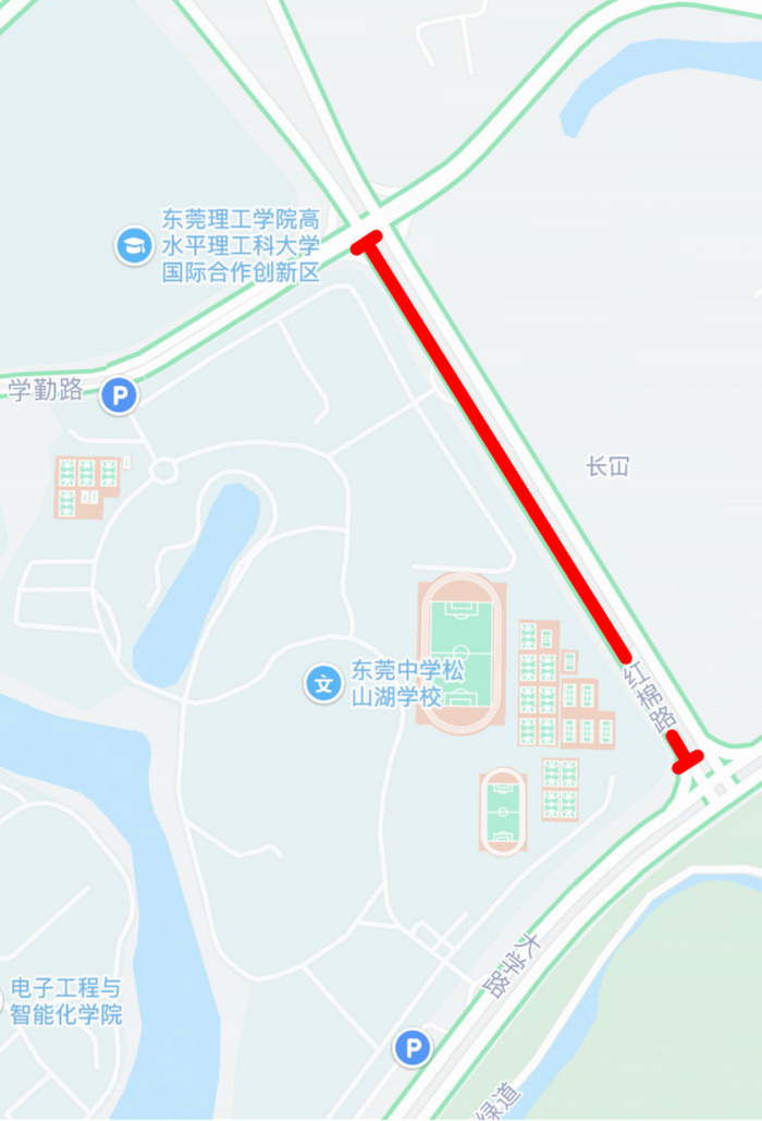 (二)红棉路(大学路与红棉路路口至学勤路与红棉路路口)。