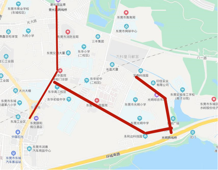 (一)景顺路、莞长路东城段、大塘头东街、东宝路东莞实验中学路段、光明路口、光明路、光明一环路等周边路段禁鸣喇叭、慢速通行;