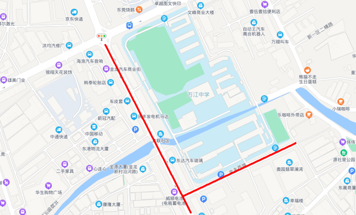 万江中学旁金龙街部分路段及金丰西路、万江创业工业路翰林实验学校路段禁止车辆驶入、禁鸣喇叭。