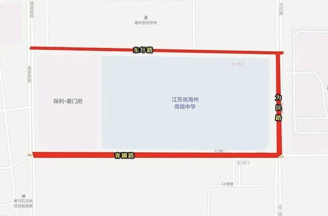 海州高级中学管制路段:东圩路的为民路口至通灌南路之间路段、为民路的东圩路口至青圃路口之间路段、青圃路的为民路口至通灌南路口之间路段(考试结束前半小时允许接考车辆停放在以上路段)建议通行车辆提前规划线路,通过通灌路、秦东门大街绕行,避开管制路段。