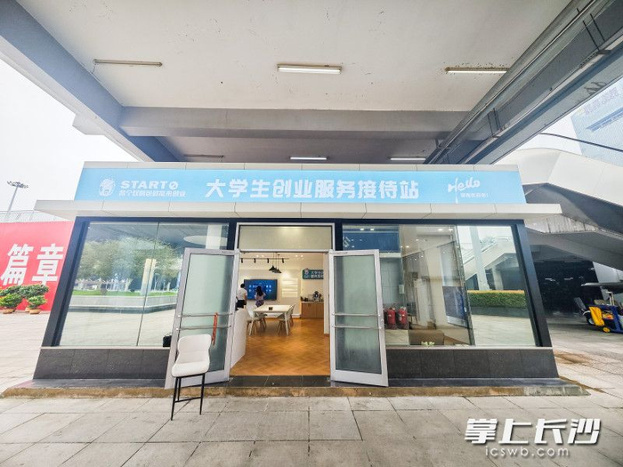 从长沙火车南站西出站口出来,“大学生创业服务接待站→”的标识十分醒目。沿着箭头方向走,不到100米便可抵达长沙火车南站大学生创业服务接待站。