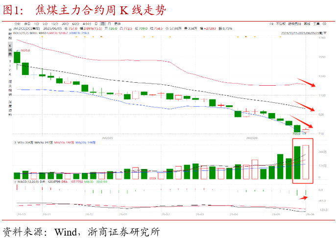 本文主要引用2024年6月外发报告《布林线的十种理论形态及应用——国债期货技术分析系列报告之三》及2024年7月外发报告《“背离”理论在当前债市中的应用——国债期货技术分析系列报告之七》中提及的布林线以及MACD技术指标使用方法,从技术面对焦煤、螺纹钢、铁矿石3个品种期货主力合约进行分析。