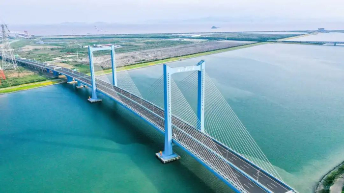 六横公路大桥一期,设计速度100公里/小时,为双向六车道高速公路。