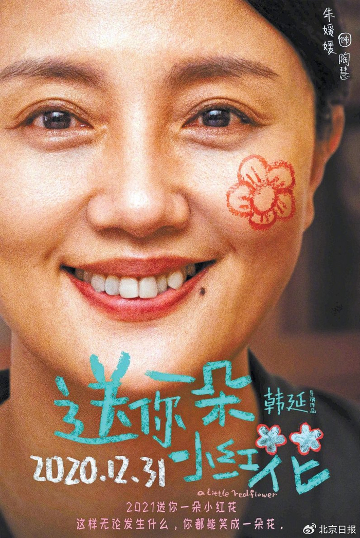 《送你一朵小红花》中的母亲,热爱生活为人善良,但因为儿子身患癌症,治疗费用昂贵,只能精打细算地过日子,买菜会厚着脸皮掐掉不新鲜的菜叶子再过秤,也会为五块钱的停车费与车库管理员争执许久。她刚刚遭受儿子癌症复发的打击,遇到一个女人抱着孩子乞讨,她将命运的不幸带来的无力和愤怒发泄到对方身上之后,还是含泪掏出一百元钱,给了这位可能像她一样正在被生活折磨的母亲。凭借该角色,她拿下第18届电影频道传媒大奖最受传媒关注女配角奖。