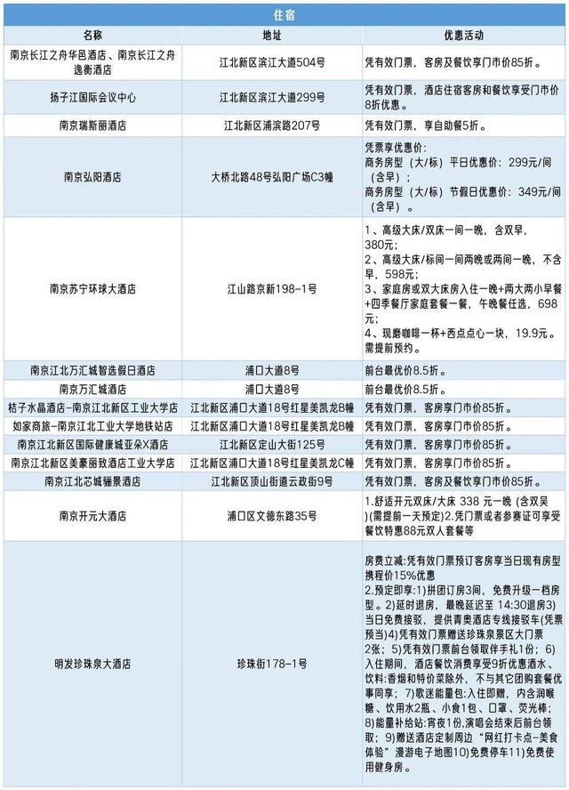 即日起至年底,凡购买江北新区内举办的大型演出和重大体育赛事门票的观众,凭观演(观赛)票据即可享受江北新区和浦口区内景区景点、住宿餐饮、商场购物等三重优惠活动。