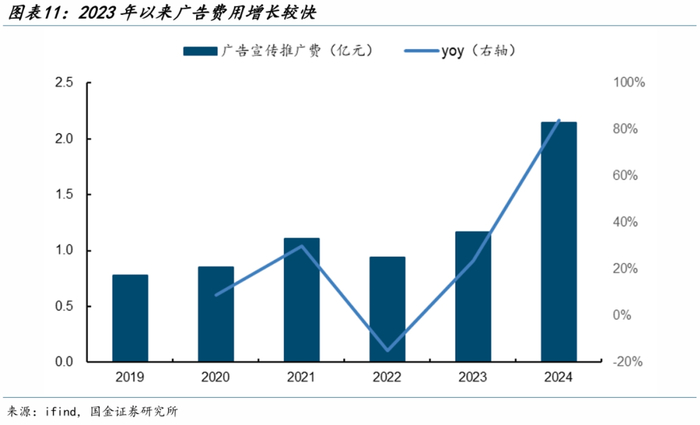 (4)品宣上,强调“高端”和“安稳”卖点。2020年底,泰山石膏和中国著名策划公司张默闻策划集团合作,升级企业标志,重新梳理泰山石膏核心卖点——用“在中国每卖2张高端石膏板,就有1张是泰山”作为全新广告语和“中国超一线高端石膏板”的全新定位,以及充分结合泰山文化提出“用泰山、保平安”的广告词,精准表达出泰山石膏的品质和占有率,强调消费者安稳使用。公司同步拓展线下+线上渠道,线下对人流量大的公共空间、针对性强的建材市场进行广告、客户门面、户外墙体等精准投放,同时不断拓展线上渠道,打造全媒体传播矩阵,2023年以来,公司广告宣传推广费增长较快。