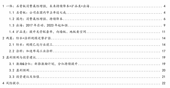 “一体”:石膏板消费属性增强,持续降本+扩品类+出海