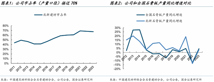 1.1石膏板:公司在国内市占率近七成