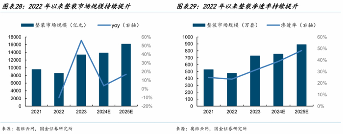 整装市场规模及渗透率有加速提升的可能性,石膏纤维板在隔墙、地板领域的应用有望借助整装趋势打开。根据奥维云网发布的《2024年中国家装市场蓝皮书》,2024年,整装市场规模达1.38万亿元,同比增长3.6%,预计到2025年市场规模突破1.6万亿元。2024年整装渗透率达到38.8%,同比增长7.6pct,预计到2025年进一步提升至48.2%。